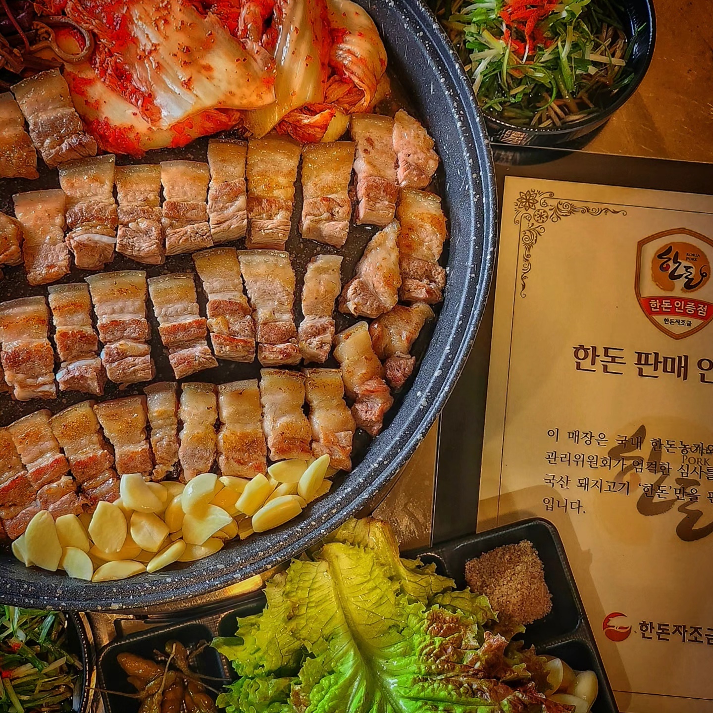 - 주메뉴: 국내산 생 목살(180g) 8,900 | 음료수 2,000 | 막걸리 3,900 | 청하 4,900 | 맥주 3,900 | 소주 3,900 | 공깃밥 1,000 | 볶음밥 2,000 | 된장찌개 2,000 | 새송이버섯 3,000 | 한돈 김치찌개 3,900 | 잔치국수 4,900 | 묵사발 4,900 | 냉면(물/비빔) 5,900 | 국내산 생 삼겹살 (180g) 8,900