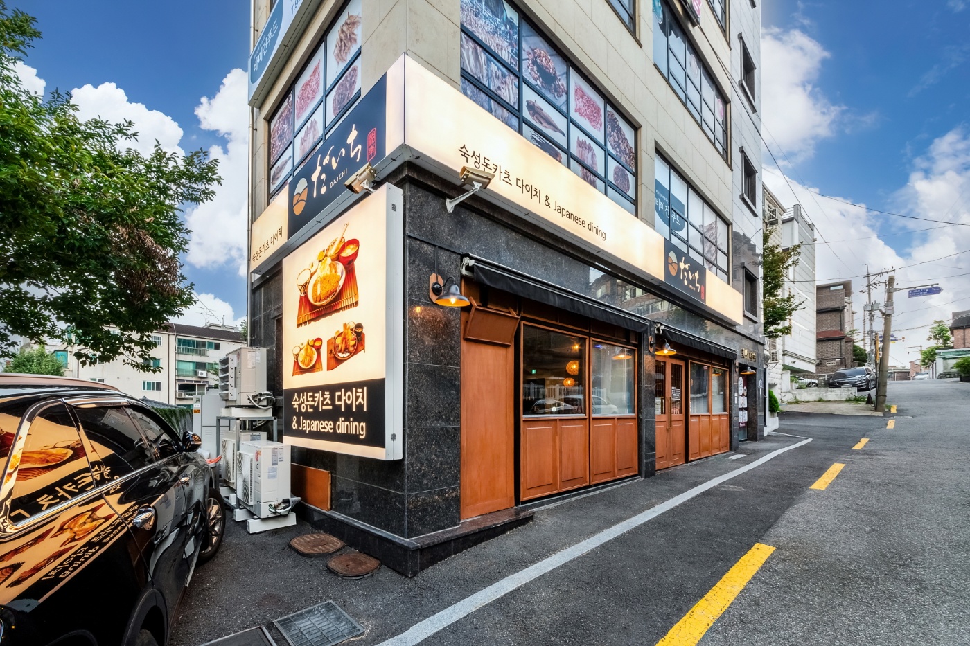 - 주메뉴: 함박스테이크정식 14,000 | 안심카츠정식 15,000 | 등심카츠정식 15,000 | 치즈카츠 정식 15,500 | 해산물모듬 15,500 | 등심카레정식 14,000 | 안심카츠동 14,000 | 어묵우동 9,000 | 카레우동 9,000
