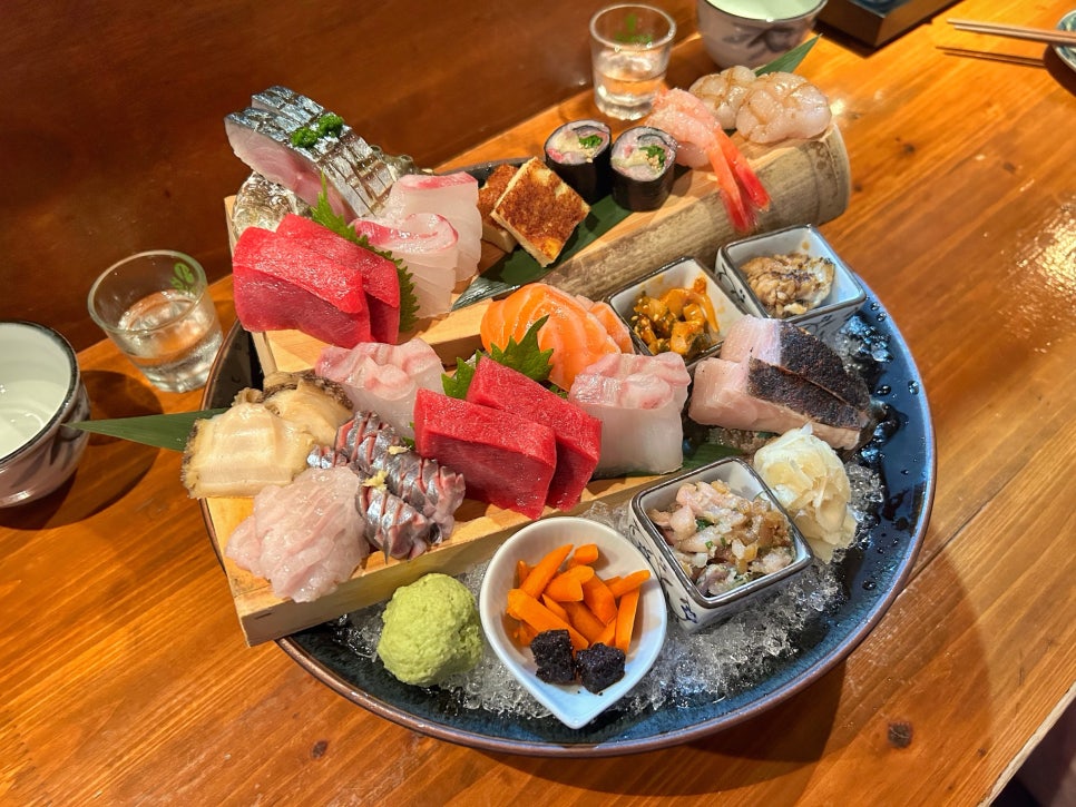 - 주메뉴: 2인 숙성모듬사시미 66,000 | 명란감자 17,000 | 아보카도참치타르타르 24,000 | 해물야끼우동 22,000 | 사천해물나베 35,000 | 타마미소두부튀김 19,000 | 사카무시 17,000 | 레몬크림새우 21,000